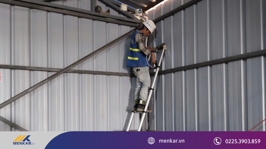 Quy trình triển khai được Menkar thực hiện bài bản từ khâu tư vấn đến bàn giao. Sau khi tiếp nhận yêu cầu, Menkar tiến hành khảo sát trực tiếp tại xưởng, tư vấn phương án kỹ thuật và báo giá minh bạch.